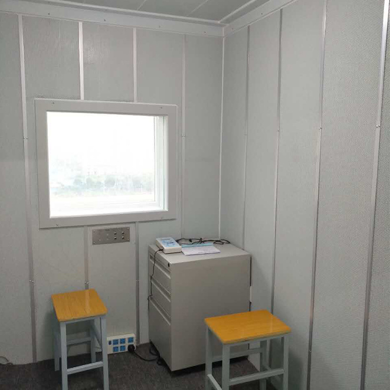 隔音房采用全封闭组装式结构,它是将噪声源控制在一个较小的空间里面割断噪声往外传播的一种控制措施。由于每种声源特性、控制要求、使用环境不一样,因此往往它需要根据具体情况设计加工。组装时隔音房的隔声板、隔声门、隔声观察窗、框架等采用模、通用化使用,具有拆装方便快捷、便于维修操作,降低噪音量10-40db(A)可选。因此可根据用户不同的要求组装从而降低成本。另外,隔音房既可隔离设备的高噪音,又可作为高噪音车间的控制室,减少噪声对人体的危害。同时配备有通风降温、散热装置和进、排风消音器,保证设备正常工作。